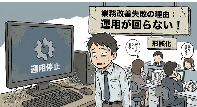 業務改善やDXの取り組みが失敗する理由として、 「ツールが合わなかった」「機能が足りなかった」と語られることがあります。しかし、多くの業務改善において 失敗の最大の要因は「運用が回らなかった」ことです。